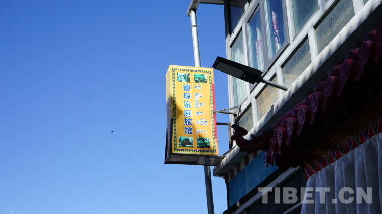 二十世紀(jì)八十年代前,整個(gè)洛扎縣的機(jī)動(dòng)車普及率很低,普通百姓出門只能乘坐馬車,從拉康鎮(zhèn)到洛扎縣縣城需要三天時(shí)間。所以在那時(shí)候,鎮(zhèn)子里的人很少去縣城,一些老人甚至一輩子也沒走出過拉康。2019年,拉康鎮(zhèn)的盤山公路全線通車,極大地改善了當(dāng)?shù)嘏c外界的交流交往,拉康鎮(zhèn)客流量逐步提升,2022年景區(qū)年旅游人次達(dá)38000余人次,政府在發(fā)展旅游業(yè)的同時(shí),投入100余萬(wàn)元帶動(dòng)居民開辦家庭旅館——村民將自家空余的房間對(duì)外短租,形成民俗式的家庭旅店,德瓊家庭旅館就是這樣的一間旅館。