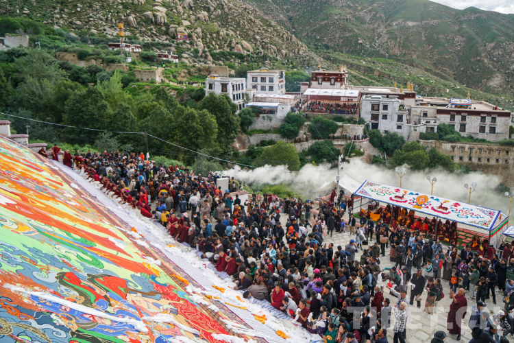 圖為2023年拉薩雪頓節(jié)哲蚌寺展佛現(xiàn)場。雪頓節(jié)距今已有近千年歷史,近年來雪頓節(jié)在各級政府的保護和發(fā)展中,已從單純的民俗文化節(jié)日成為集傳統(tǒng)展佛、體育競技、文藝匯演、經(jīng)貿(mào)洽談、商品展銷、旅游推介、民俗體驗等為一體的復(fù)合型節(jié)日。 攝影:趙振宇