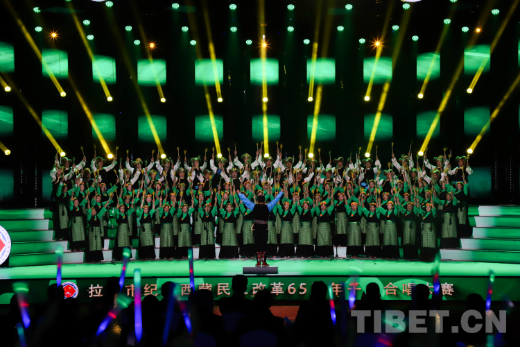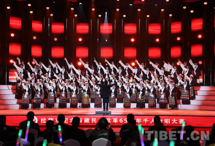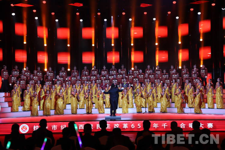 中國(guó)西藏網(wǎng)訊 3月27日晚,《盛世中國(guó) 幸福西藏》拉薩市紀(jì)念西藏民主改革65周年千人合唱大賽在拉薩師范高等專科學(xué)校體育館舉行。