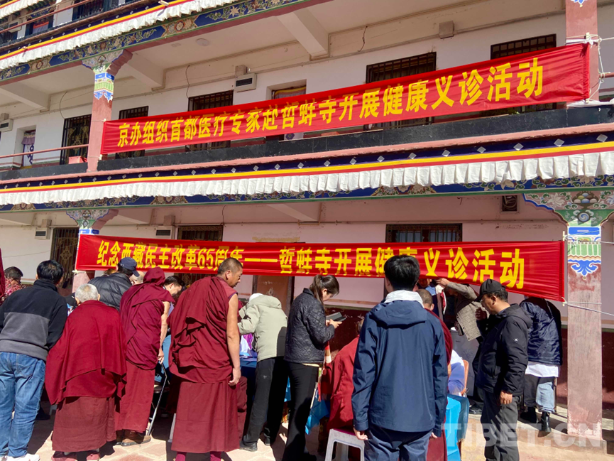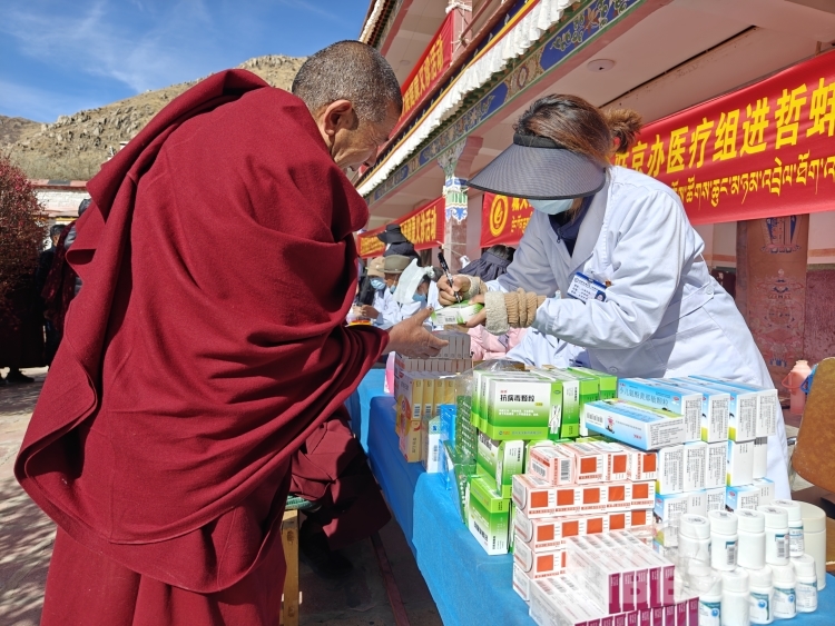 中國西藏網(wǎng)訊 “收到今天有北京醫(yī)療專家過來義診的消息,我一大早就過來了。身體平時沒什么大的毛病,就想著借此機會檢查一下,畢竟年紀大了?!?6歲的哲蚌寺僧人加參高興地說。為了讓哲蚌寺僧人和周邊民眾在家門口就能享受到優(yōu)質(zhì)的醫(yī)療服務,傳播健康生活理念,提高健康意識,3月29日,西藏自治區(qū)人民政府駐北京辦事處(以下簡稱:京辦)組織北京11家重點醫(yī)院的12名醫(yī)療專家走進位于拉薩市城西的哲蚌寺,開展“踔厲奮發(fā)擔使命 送醫(yī)進藏暖民心”義診活動,得到僧人和群眾的一致稱贊。