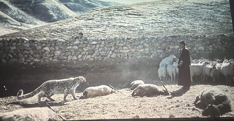 影片的結(jié)尾似乎很突然,雪豹終究沒有死在受損牧人暴怒的情緒和揮舞的錘子下,在人類文明的關(guān)照下,被主動(dòng)解圍,回歸雪山,與小雪豹相會(huì)相伴。只有萬導(dǎo)這種深邃包容、沉著冷靜又充滿睿智的作家、藝術(shù)家才能挖掘和表現(xiàn),這里蘊(yùn)含著生命的慈悲和世人的智慧。對(duì)此,我們還有哪些拷問呢?