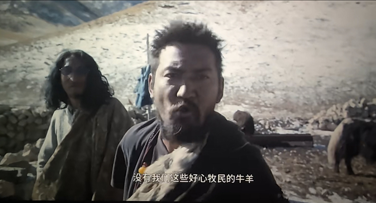 當(dāng)然,影片還出現(xiàn)了許許多多新生事物,蘋果手機(jī)、平板電腦、紅外攝像機(jī)、挖掘機(jī),微信、BBC紀(jì)錄片,古老的牧人、傳統(tǒng)的生活與現(xiàn)代社會(huì)、科技產(chǎn)品毫無距離。