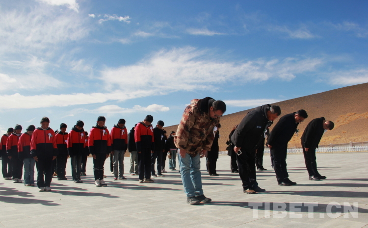 圖為獅泉河烈士陵園祭奠孔繁森同志活動現(xiàn)場全場肅立,向孔繁森同志默哀 攝影:劉莉