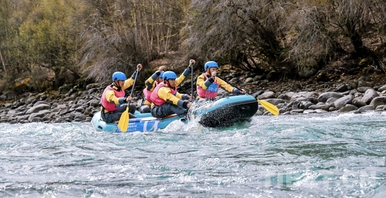 下午,本次巴松措漂流國際公開賽最后一個四人漂流艇繞標賽,雖賽道僅短短3公里,卻險灘急流不斷,四個繞標浮標位置充滿技術(shù)難度。在激烈地角逐之后由成都伽斯特健身俱樂部、重慶彭水縣和曲麻萊云上文旅三支隊伍獲得四人漂流艇繞標賽前三名。