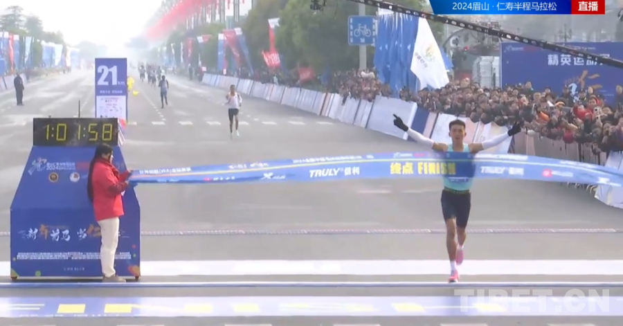 圖為2024仁壽半程馬拉來(lái)自西藏自治區(qū)運(yùn)動(dòng)員扎西次仁奪冠并打破全國(guó)半馬記錄
