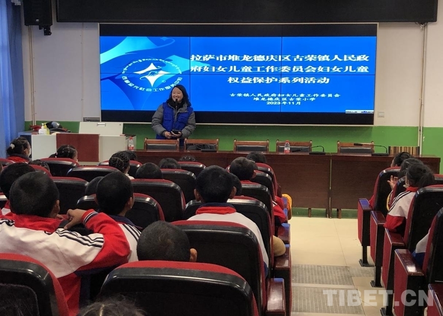 圖為西藏星光社會工作服務中心理事長德慶玉珍在日喀則市定日縣開展“星光計劃”自護教育課程 受訪者供圖