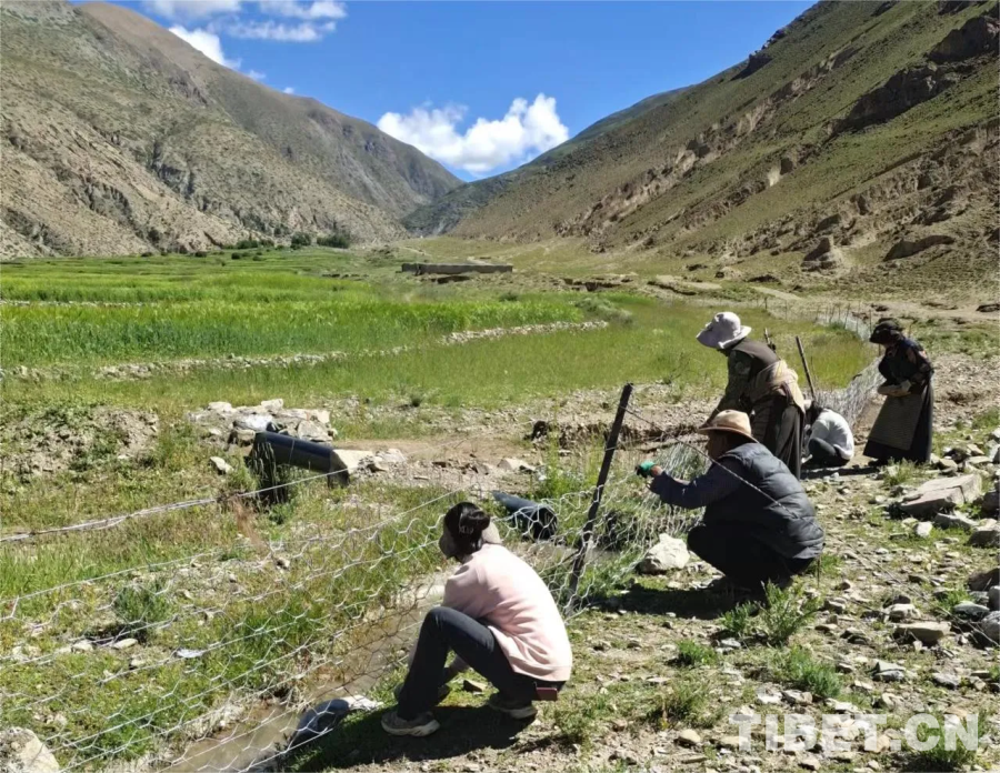 圖為駐村工作隊組織群眾加固當(dāng)?shù)夭輬龇雷o(hù)網(wǎng)