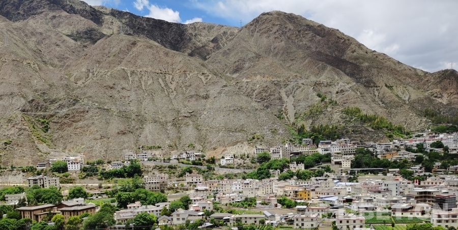 蜿蜒的山路,陡峭的崖壁,車子在兩山之間沿著金沙江疾馳。山上一片荒蕪,沒有一點(diǎn)綠色,熱浪滾滾而來,我們終于來到了得榮,這個(gè)因陽光充足而有“太陽谷”美譽(yù)的地方。得榮縣位于四川省甘孜藏族自治州西南部,有“長(zhǎng)征國(guó)家文化公園甘孜段南大門”之稱。