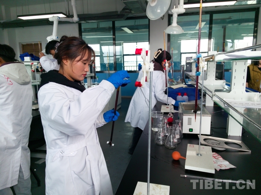 圖為西藏技師學院的學生正在做實驗 攝影:王淑