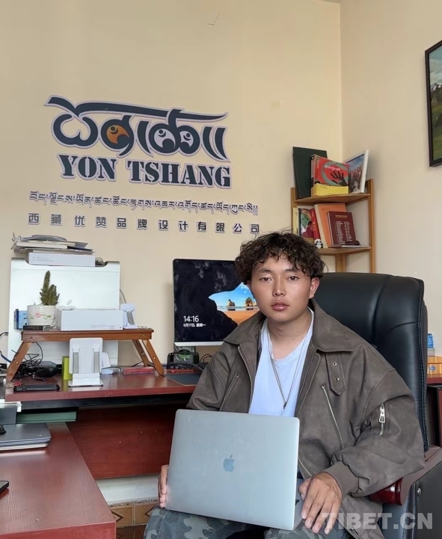 次仁頓珠是學院2022年平面設計專業(yè)的畢業(yè)生,也是全國第一屆職業(yè)技能大賽“西部技能之星”獲得者,我們到訪時他剛好回校做單元展。次仁頓珠畢業(yè)后和四個合伙人一起在拉薩創(chuàng)業(yè),創(chuàng)辦了優(yōu)贊品牌設計有限公司,主要業(yè)務包括產(chǎn)品包裝設計、logo設計和品牌設計。創(chuàng)業(yè)伊始全靠幾個合伙人自己出去推銷,如今經(jīng)過老客戶口口相傳,很多客戶主動來找他們,生意越來越好?!皠?chuàng)業(yè)兩年多,我大概分紅了40多萬,今年我們幾個合伙人都買了車。未來我們計劃擴大公司的店面,好好裝修,然后開始線上直播,以后在拉薩買了房子從昌都接媽媽一起來住?!贝稳暑D珠向我們介紹,笑容中帶著羞澀與驕傲。