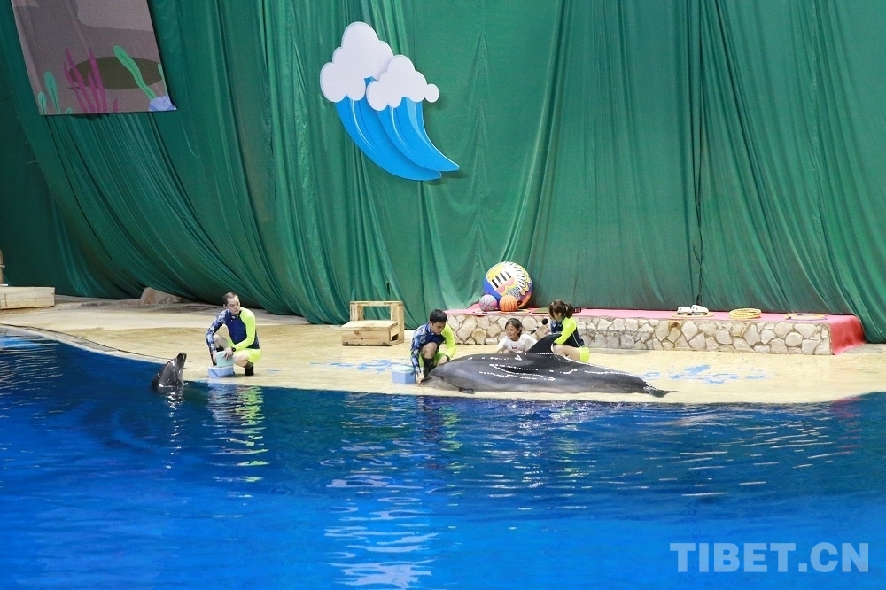來(lái)自羊八井鎮(zhèn)中心小學(xué)的次仁措姆有幸被選中跟海豚親密接觸?!拔矣H手摸了摸海豚的皮膚,光溜溜的,還跟海豚合影了,真是一次奇妙和難忘的體驗(yàn)!”次仁措姆興奮地跟小伙伴們“炫耀”自己的好運(yùn)氣。