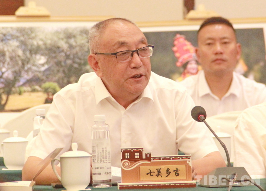 圖為道孚籍學(xué)者七美多吉在“花開(kāi)道孚 潤(rùn)道有聲”道孚縣文化傳承發(fā)展座談會(huì)上介紹道孚傳統(tǒng)文化有關(guān)情況 攝影:劉莉