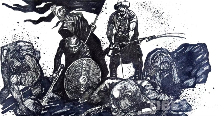 圖為英勇抗英的西藏勇士(四川民族學(xué)院郭重曦繪)
