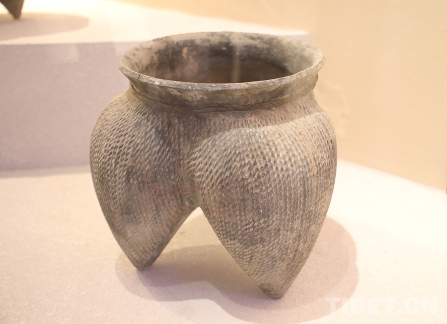 圖為商代灰陶單耳鬲 攝影:龍真多吉