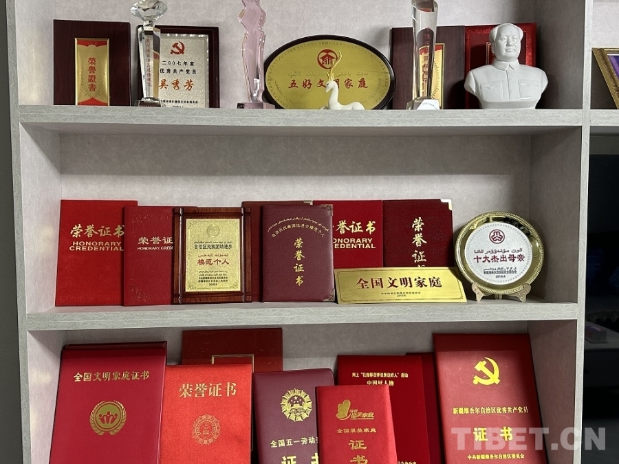 全國五一勞動獎?wù)芦@得者、全國民族團(tuán)結(jié)進(jìn)步模范個人,自治區(qū)民族團(tuán)結(jié)進(jìn)步模范個人、新疆“十大杰出母親”、全國文明家庭……記者走進(jìn)吳秀芳老人家,一面碩大的榮譽(yù)墻映入眼簾,這些都是吳秀芳——這位錫伯族母親二十多年風(fēng)雨歷程最好的見證。50年代出生的她,見證了新中國的成長,也經(jīng)歷了個人的坎坷與挑戰(zhàn)。