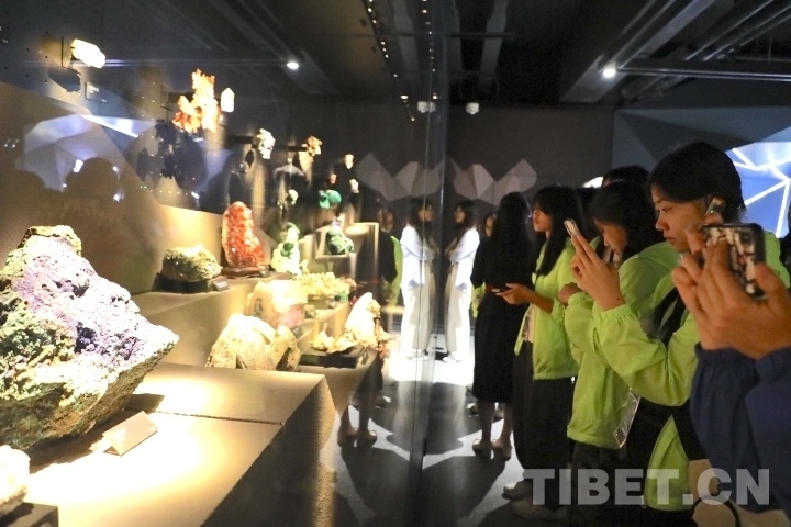 上午9時(shí),身披一襲金色霞衣的青海省自然資源博物館,如一座知識(shí)燈塔,引領(lǐng)這些香港學(xué)子們步入時(shí)光長(zhǎng)廊。在“礦物晶體廳”,一堂生動(dòng)的地質(zhì)課正以最直觀的方式展開(kāi)。學(xué)生們緊跟講解員的步伐,對(duì)每一種礦物質(zhì)都充滿好奇。他們提出的問(wèn)題,既天真爛漫又不乏機(jī)智。