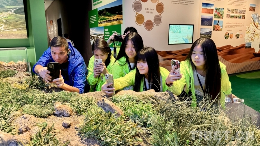 圖為香港青少年參觀高原特有物種藏野驢和野牦牛的標(biāo)本。攝影:桑吉