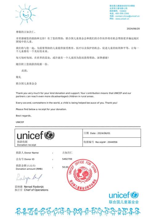 “第一次嘗試性捐款后沒(méi)過(guò)多久便收到了官方發(fā)給我的捐款收據(jù)?!惫湃绱稳收f(shuō),想到自己的一點(diǎn)點(diǎn)付出也能給困境兒童提供幫助,那一瞬間心底的滿(mǎn)足感是無(wú)法言喻的。