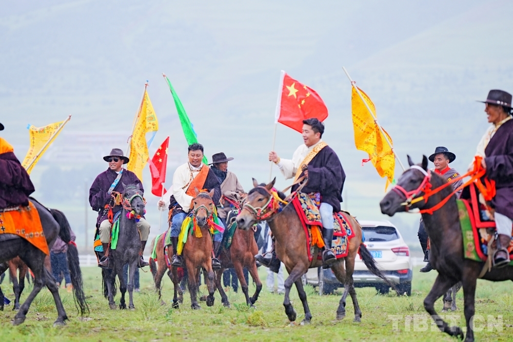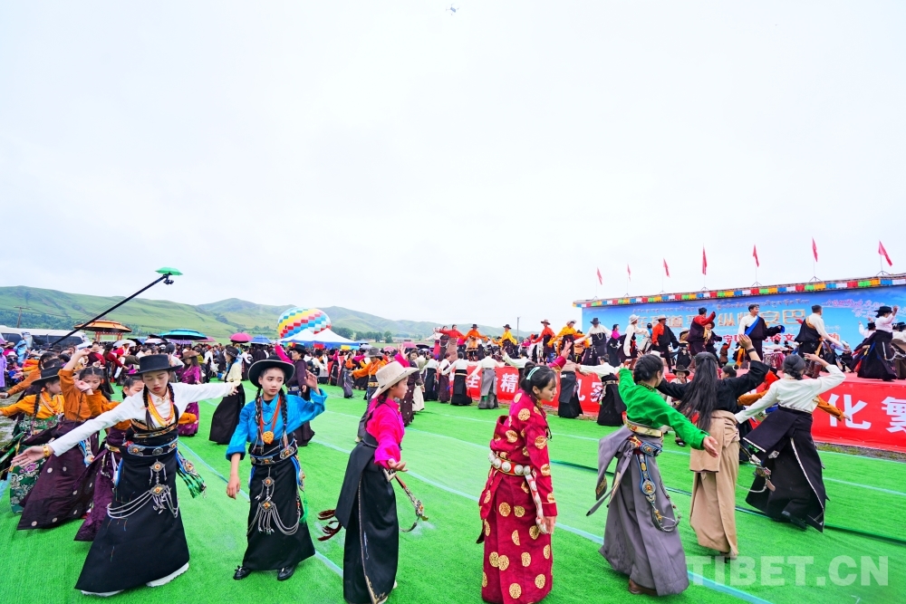 一場(chǎng)傳統(tǒng)的祈福儀式拉開活動(dòng)的序幕。身著盛裝的騎手擎著彩旗,策馬轉(zhuǎn)繞祈福的煨桑臺(tái),共同祝愿祖國(guó)繁榮昌盛,祝福家鄉(xiāng)安定祥和,各族人民團(tuán)結(jié)進(jìn)步。少兒服飾隊(duì)和300名當(dāng)?shù)厝罕娛峙豕_(dá)悉數(shù)亮相在舞臺(tái)前,向四方來(lái)客表示誠(chéng)摯歡迎?!百愸R”“吉祥大鍋莊”等民族歌舞精彩上演,游客也加入其中跳起團(tuán)結(jié)鍋莊,盡享盛夏安巴之樂(lè)。