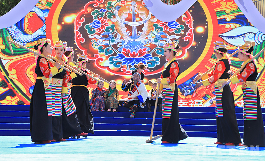 開幕式文藝演出分為“春之韻”“夏之夢”“秋之歌”“冬之舞”四個篇章,通過舞蹈、情景劇、歌曲等多種形式,生動展現(xiàn)了洛扎人民在穩(wěn)定、發(fā)展、生態(tài)、強(qiáng)邊等方面的付出與成就。