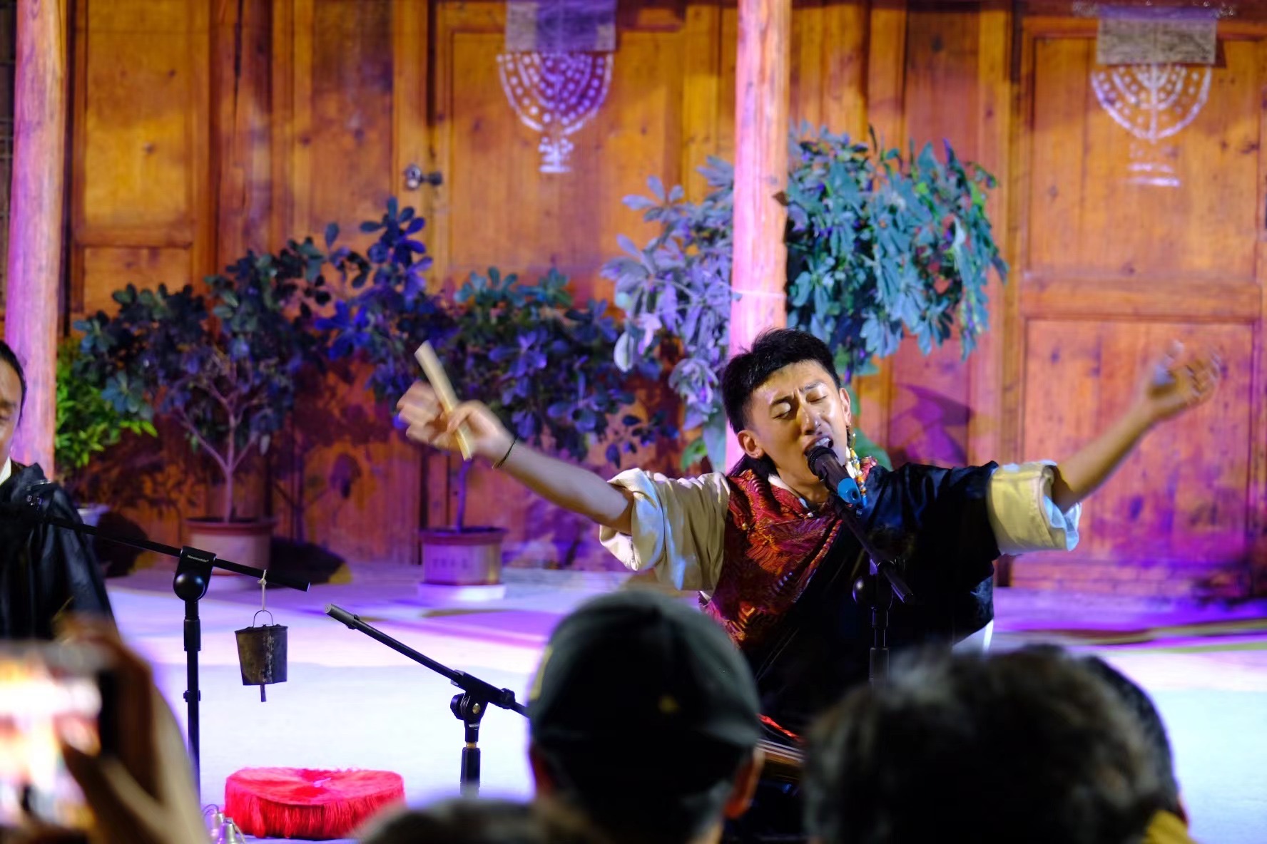 開幕儀式當(dāng)晚,為期三天的古院鄉(xiāng)村音樂周邀請到了三組耕耘在中華優(yōu)秀傳統(tǒng)音樂領(lǐng)域的青年藝術(shù)家。古院落作為獨特的舞臺空間,迎接了一場場別開生面的音樂聚會。