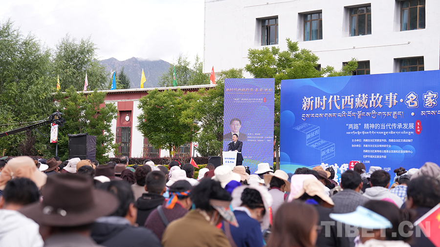 活動(dòng)采取踐行典范與專家宣講相結(jié)合的形式,邀請到了西藏自治區(qū)黨委黨校(行政學(xué)院)常務(wù)副校長(副院長)、教授崔祿春擔(dān)任主講嘉賓,同時(shí)也邀請青藏公路事業(yè)發(fā)展和應(yīng)急保障中心安多養(yǎng)護(hù)段109養(yǎng)護(hù)保通點(diǎn)工區(qū)長地嘎、武警第二機(jī)動(dòng)總隊(duì)某部戰(zhàn)士白剛分享自己與路有關(guān)的故事。