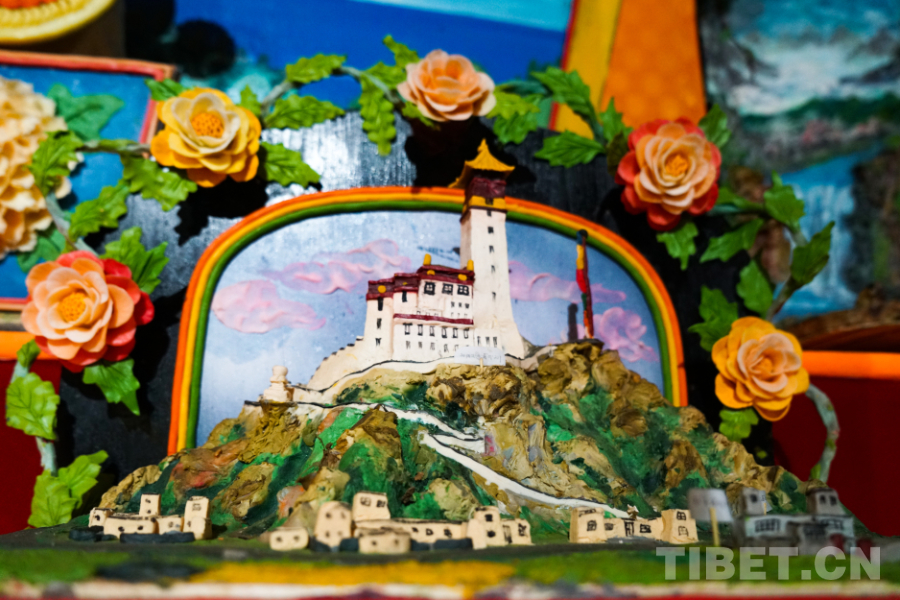 圖為瓊科寺內(nèi)的傳統(tǒng)主題酥油花作品 攝影:王淑