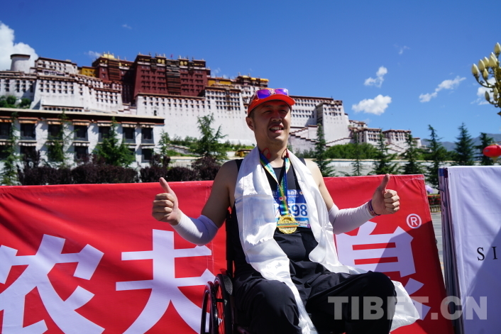 布達(dá)拉宮終點處人頭攢動,工作人員為每一位完賽選手獻(xiàn)上哈達(dá)、掛上獎牌,和選手們一起享受拉薩半程馬拉松挑戰(zhàn)完成的滿足與快樂。來自山東濟(jì)寧的任先振是本屆拉薩半程馬拉松唯一一位輪椅半程選手,他告訴記者,這一路他不僅沒有高反,且因為是自己參加過最高海拔的半程馬拉松而更加富有激情,在拉薩他感受到了許多來自藏族同胞的關(guān)心與溫暖,來到高原前他已經(jīng)報名了拉薩旅游團(tuán),他要去看看屬于雪域高原的美景。