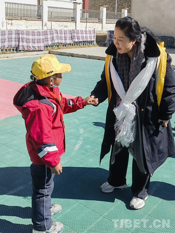 2023年11月,作為北京市新聯(lián)會(huì)理事、石景山區(qū)新聯(lián)會(huì)會(huì)長(zhǎng)、朵云文化藝術(shù)服務(wù)中心主任,我第二次到西藏,隨公益組織雙閃車隊(duì)、援藏博士服務(wù)團(tuán)一起到日喀則市定日縣絨轄鄉(xiāng)完小,為這所邊境小學(xué)捐贈(zèng)了價(jià)值1000元的文具。