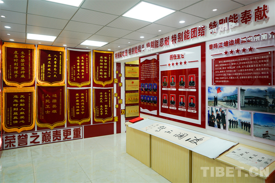 在普瑪江塘邊境派出所,“精神力量”永遠(yuǎn)比“榮譽之墻”更加重要。一面面錦旗掛滿了墻壁,卻將“榮譽之巔責(zé)更重,頂峰之處旗更紅”寫在錦旗之下;墻上的每一張照片都是一段不可抹去的記憶,卻將“特別能吃苦、特別能戰(zhàn)斗、特別能忍耐、特別能團(tuán)結(jié)、特別能奉獻(xiàn)”的“老西藏精神”高懸照片之上。