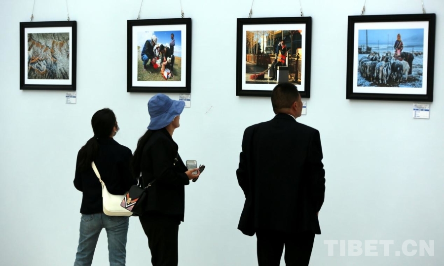 圖為當(dāng)?shù)馗刹?、群眾等參觀“象雄古韻·天上阿里”第四屆網(wǎng)絡(luò)影像大賽優(yōu)秀作品展 攝影:王佳豪