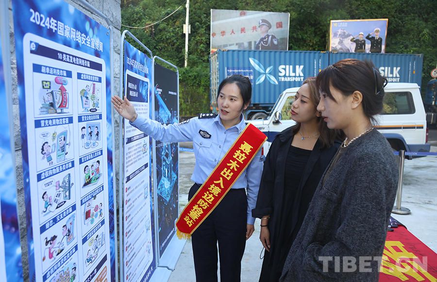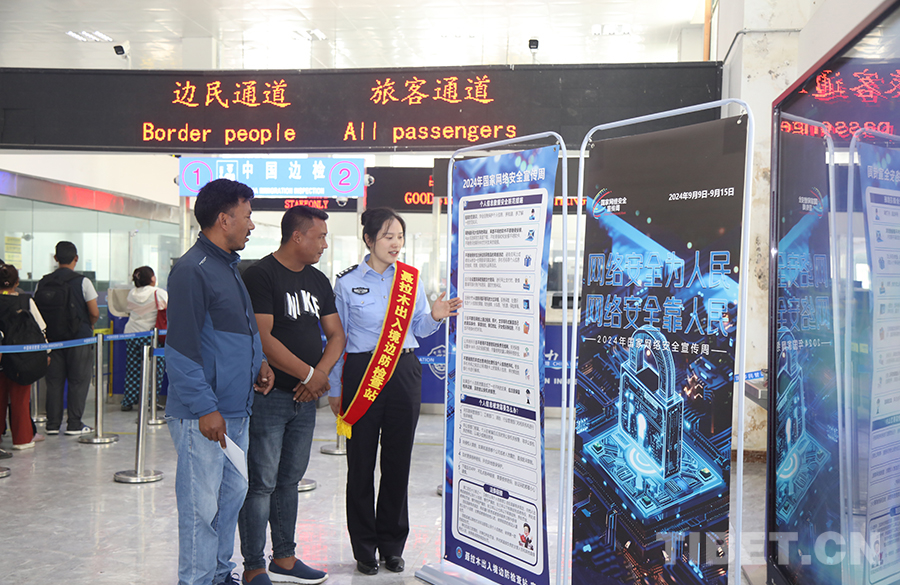 圖為聶拉木出入境邊防檢查站移民管理警察開展網(wǎng)絡安全周集中宣傳活動 攝影:高榮元