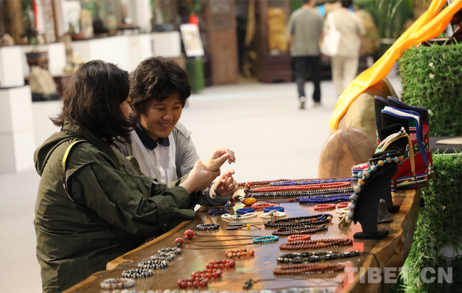 藏式古珠飾品,色彩濃郁、造型獨(dú)特,透著與眾不同的區(qū)域文化風(fēng)格和時代美,吸引很多游客駐足觀賞和驚嘆。