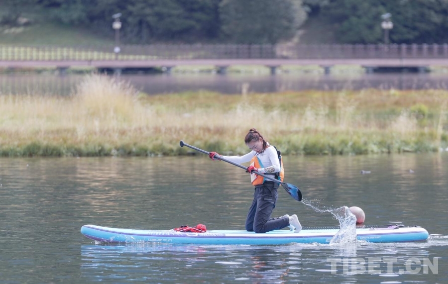 中國西藏網(wǎng)訊 9月26日,2024年“綠水青山”中國休閑運(yùn)動挑戰(zhàn)賽(西藏林芝站)在西藏林芝魯朗國際旅游小鎮(zhèn)開賽。來自全國各地的百余名體育健兒及愛好者相聚在扎塘魯錯湖畔,共同在藍(lán)天白云下、綠水青山間揮槳競逐。