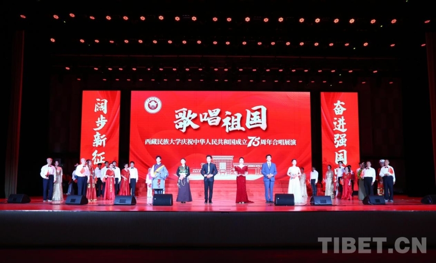 中國(guó)西藏網(wǎng)訊 紅旗獵獵,歌聲嘹亮。在喜迎中華人民共和國(guó)成立75周年之際,9月28日,一場(chǎng)以“歌唱祖國(guó)”為主題的合唱展演在西藏民族大學(xué)文體館舉行。