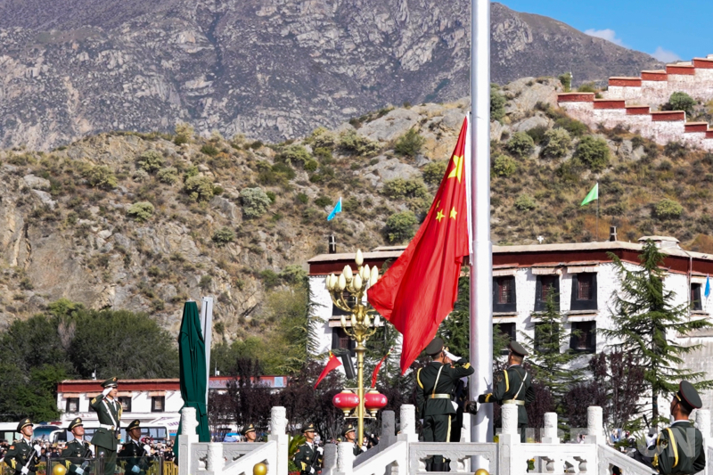 中國(guó)西藏網(wǎng)訊 10月1日上午10時(shí),西藏自治區(qū)慶祝中華人民共和國(guó)成立75周年“升國(guó)旗、唱國(guó)歌”儀式在布達(dá)拉宮廣場(chǎng)舉行。