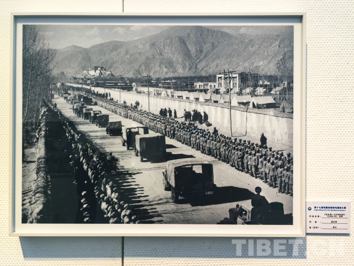 圖為第17屆西藏珠穆朗瑪攝影大展展出的藍志貴于1954年12月所拍攝的《車隊第一次開到拉薩》 翻拍:王淑