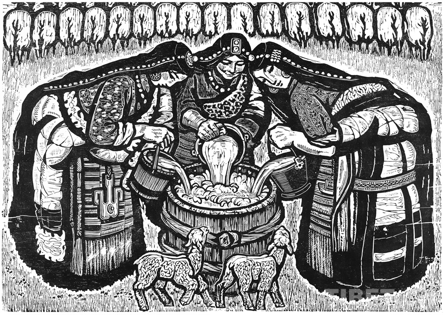 這些年來可以肯定的是我的創(chuàng)作道路和方向是基本對頭的。前幾年有人寫文章評論說,在外來思想影響已很豐富、多元化格局已經(jīng)形成的情況下,差不多只有版畫還恪守著現(xiàn)實主義的創(chuàng)作道路,而且在美術領域起到了導向作用。順便為版畫說句話:搞版畫的人一直尊重生活,認定生活是第一性的,版畫一開始就是在革命的環(huán)境中發(fā)生、發(fā)展起來的。版畫隨著四大發(fā)明發(fā)源于中國的土壤,后來被歐洲發(fā)展了,反過來又影響到中國。老大的中國有發(fā)明權,但并沒有把它發(fā)展起來。魯迅先生為了推動版畫的發(fā)展,特別介紹了德國版畫和俄羅斯版畫為代表的版畫代表作和代表人物,還有美國的肯特,比利時的麥綏萊爾。介紹文字很精彩,無論對生平、對作品的介紹都很精彩。他推出的那些版畫大師,至今仍巍然屹立在美術史上。他對版畫的深刻而獨到的理解很可貴。國外有些不很知名但有好作品的,他也介紹到。而且給我們指出哪些是范本,我們一看果然耳目一新。魯迅先生的提倡影響了中國版畫的發(fā)展,進入了一個嶄新的階段,形成所謂新興版畫。這段時間并不長,也就六七十年吧。版畫統(tǒng)領潮流,面向生活的潮流。所以它的路子就很正,這個正就是正統(tǒng),一直發(fā)展得很健康。我從小就受影響,我當時所看到的版畫都是反映民間生活的東西:戰(zhàn)爭年代反映民間的疾苦與災難,和平年代反映民眾的感情和生活,所表現(xiàn)的風景也由平常人眼中投射。一句話就是為人民服務指導下的藝術創(chuàng)作。如果問我的作品和生活的距離有多大,可說距離是小的,并未受到更多潮流的干擾,并未背離為人民服務的方向。正因如此,我要把西藏題材表現(xiàn)好,表現(xiàn)在一個理想的藝術高度上,而且這一高度還能讓一般欣賞者達到。我的理想就是這樣,要達到這一目標看來還很費勁。