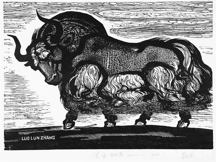 如果非要說我在版畫技法上有什么創(chuàng)新,參照西藏匠人刻經(jīng)文,在石頭上刻出來然后印出來也許就算。這不是一般石版畫概念,那叫石印,平版印刷;我這是凹版印刷??唐饋砗苜M勁,我也不管費不費勁。我有一批這樣的石刻作品。綜合版作品手法較多,我通常分別在石板和木板上刻,然后套起來印。如果搞學術交流,也許值得一談。至于說到創(chuàng)新,第一我不認為我有什么創(chuàng)新,第二我不認為在藝術上、在美術上能夠輕易談創(chuàng)新這個詞。還有第三個觀點:不需要創(chuàng)新。很簡單,你先把傳統(tǒng)學到手再說。既是傳統(tǒng),就有它的存在理由,否則早就夭折了,還傳什么統(tǒng)呢?傳,而且統(tǒng)啊!統(tǒng)是什么意思?基調是它統(tǒng)一起來的。先把傳統(tǒng)學到手,爐火純青了,神來之筆出現(xiàn)了,才有可能有所創(chuàng)造?;A是重要的。