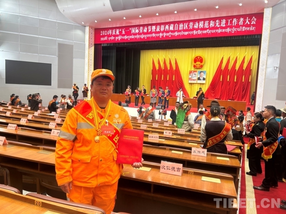 圖為覃春獲得西藏自治區(qū)勞動模范獎(jiǎng)?wù)隆?/p>
