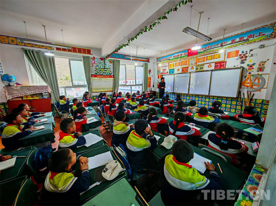 圖為洛隆縣俄西鄉(xiāng)第一小學的學生們正在認真聽老師講課