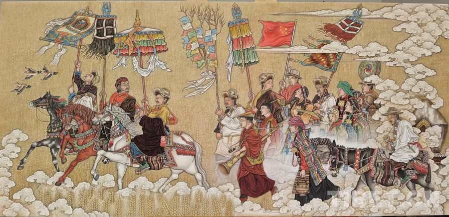 圖為展覽展出的布面重彩作品《望果節(jié)》 作者:格桑
