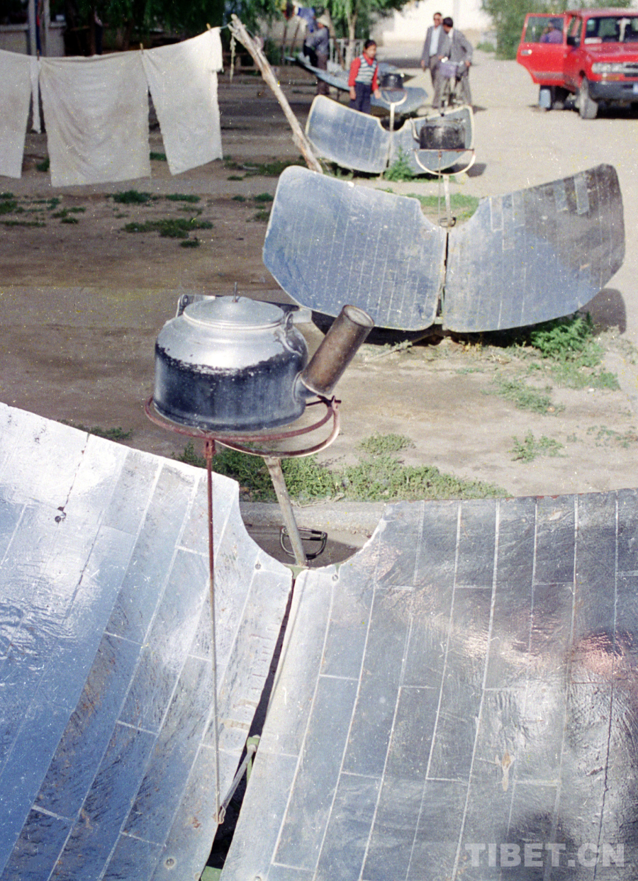 這讓我不禁想起1987年,我沿著青藏公路一路采訪進(jìn)藏,在藏北高原房前屋后,見(jiàn)到大量正在使用特殊燒水裝置太陽(yáng)灶的情景。