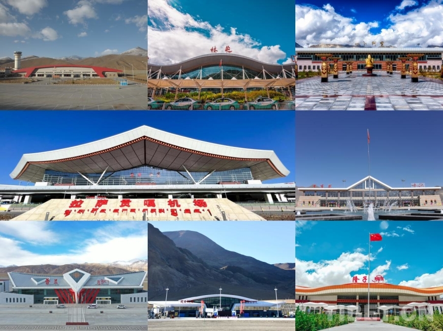 圖為西藏已建成投用的機場(拼版圖片)