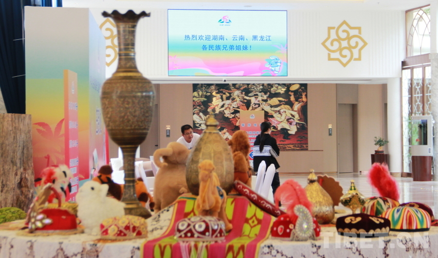 圖為新疆代表團在駐地海南三亞新疆大廈精心準(zhǔn)備聯(lián)誼活動 攝影:劉莉