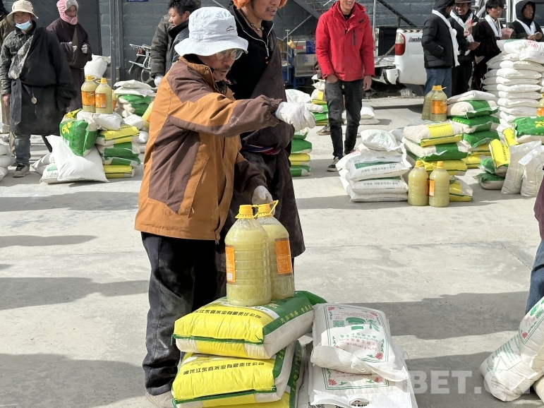 圖為藏比鄉(xiāng)牧民領(lǐng)取分紅物資現(xiàn)場(chǎng)