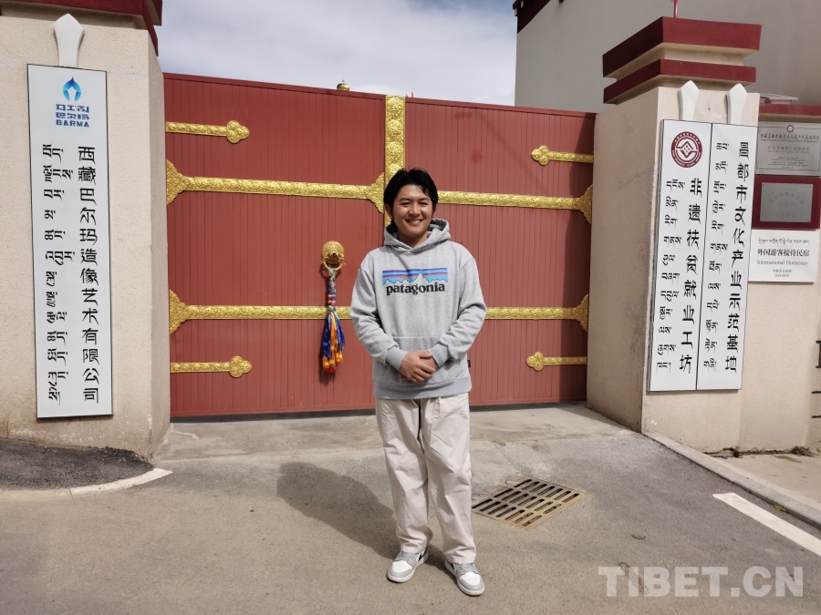 小伙子名叫嘎瑪次仁朗加(后文簡稱朗加),是巴爾瑪錘揲法造像技藝第八代傳承人,1995年出生在昌都市卡若區(qū)嘎瑪鄉(xiāng),13歲跟隨父親學(xué)習(xí)巴爾瑪錘揲法造像技藝,至今已有16年。