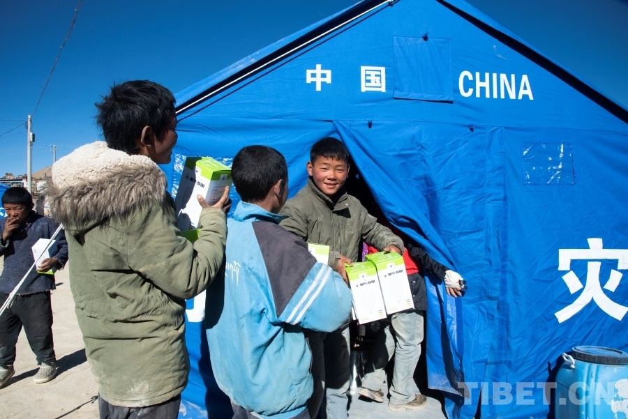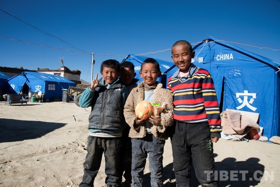 “我們家里的房子全部倒塌了,但好在沒人受傷?!薄俺燥?、睡覺都沒有任何問題,就是帳篷里還沒有通電?!薄叭绻軌蛟S一個愿望,我希望這場地震沒有發(fā)生。”措昂村的小男孩們將腳下的足球“按下暫?!保蛴浾咧v述著他們受災(zāi)三天的生活情況。三名穿著紅馬甲的救災(zāi)人員走進安置點,小男孩們迅速將他們圍了起來。