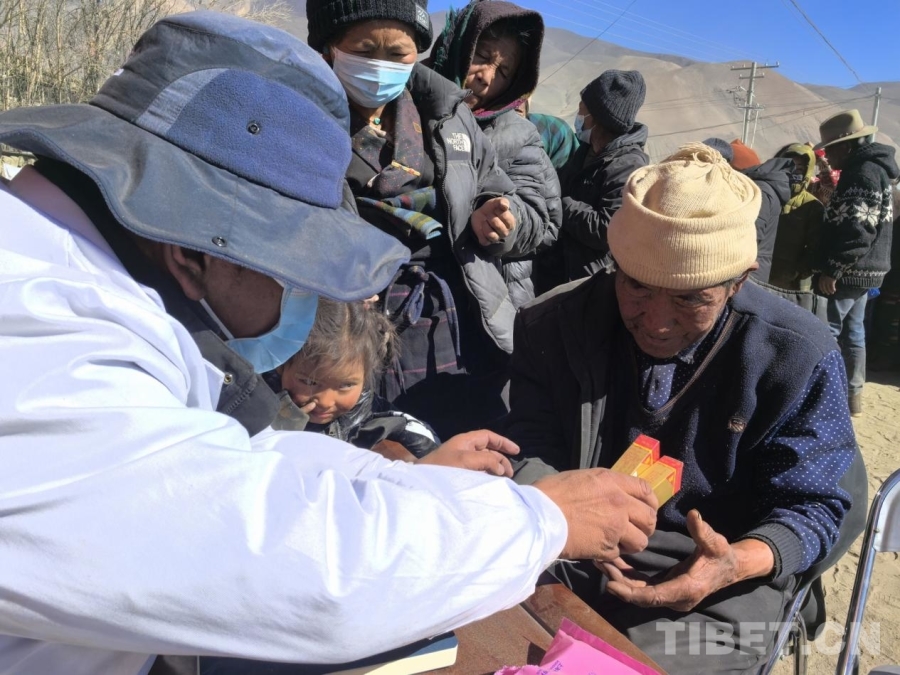 赤列是一位來自西藏自治區(qū)日喀則市的藏醫(yī)。他在當(dāng)?shù)匦嗅t(yī)多年,熟稔當(dāng)?shù)胤窖裕煜ぎ?dāng)?shù)厍闆r,地震發(fā)生后,他迅速籌集了一批當(dāng)?shù)厝罕娂毙璧乃幤?,來到受?zāi)群眾安置點,為大家免費(fèi)送醫(yī)送藥。