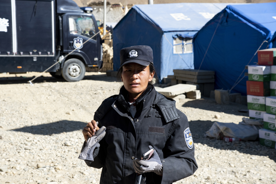 在嘎白村,有一位年齡最小的黨員名叫阿旺德金,去年剛剛大學(xué)畢業(yè)的她選擇到嘎白村成為一名科技振興專(zhuān)干。相較于塔杰書(shū)記、頓珠巴姆隊(duì)長(zhǎng)以及次仁玉珍來(lái)說(shuō),她的工作經(jīng)驗(yàn)尚不豐富,在大災(zāi)大難面前雖還不能獨(dú)當(dāng)一面,但在自己的崗位上兢兢業(yè)業(yè)。13日,嘎白村的村民正在從安置帳篷搬往活動(dòng)板房居住,阿旺德金在一戶(hù)又一戶(hù)的帳篷內(nèi)幫助受災(zāi)群眾收拾個(gè)人物品。
